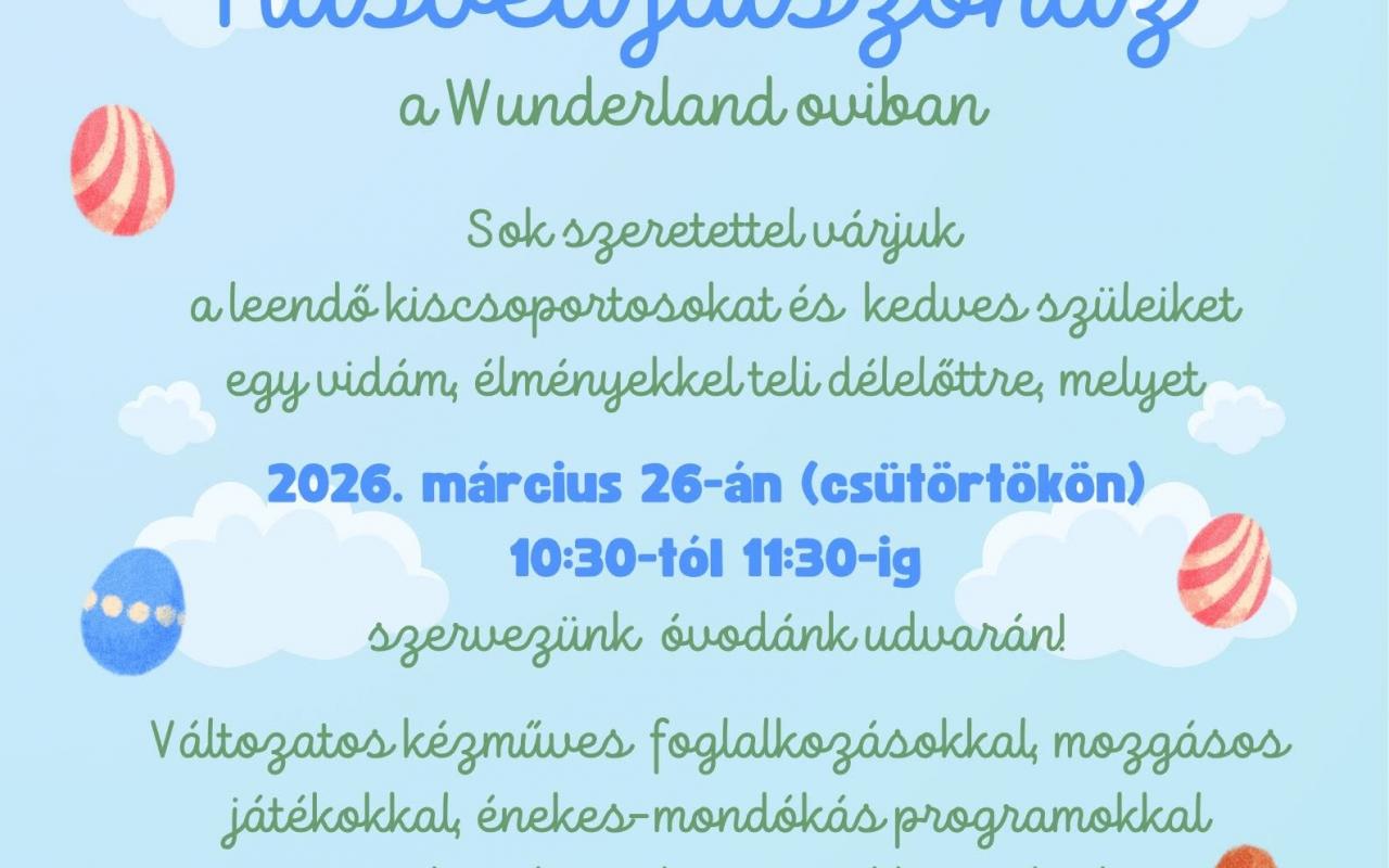 Szeretettel hívunk Benneteket és leendő kis ovisokat a Wunderland Óvoda Húsvéti játszóházára.